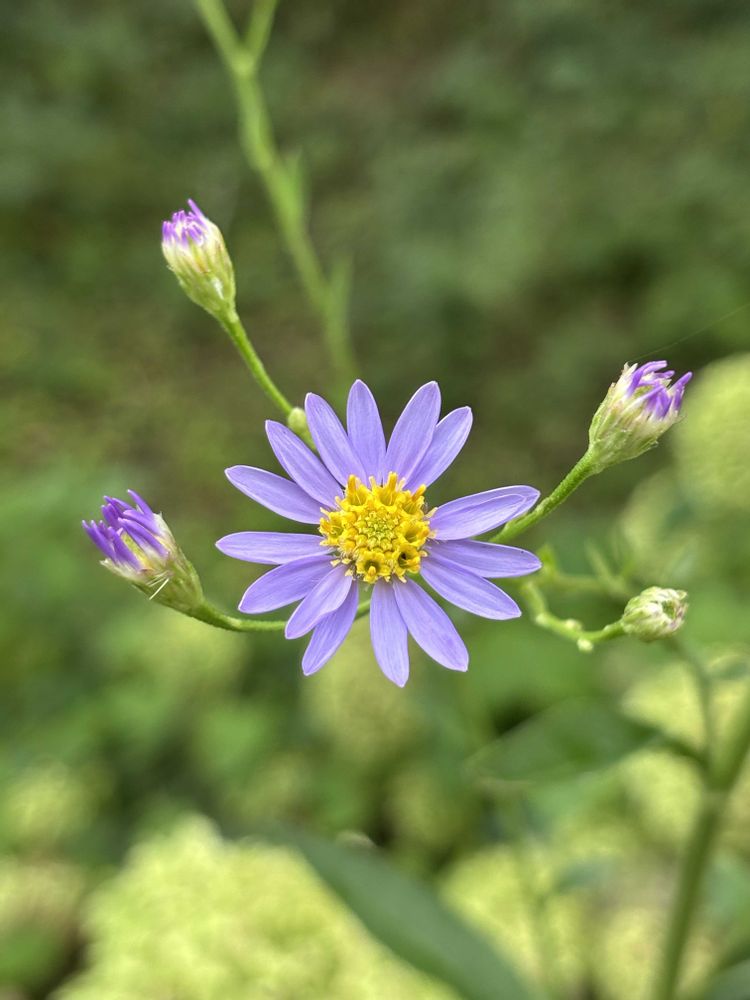 駐車場に入って、一段上の花壇を見上げると、薄紫色の花が見えました。背が高いので、よく目立ちます。お参りを済ませて、その花を見に行ったら、ずいぶん背の高いノコンギクだねぇ💦こんなデカいのは初めてです。とりあえず、シオンで調べると、草丈1.5~2m、花径は3~3.5cmだそうです。花はそこまで大きくないけど、これはまさに紫菀(シオン)です。茎のスジスジもシオンです。他のサイトもほぼ同じでした。