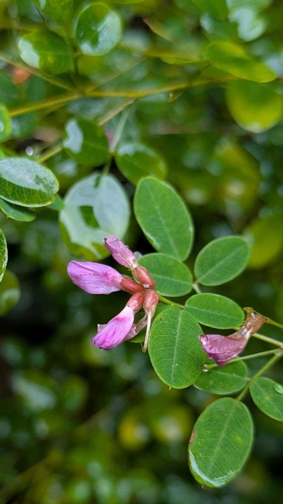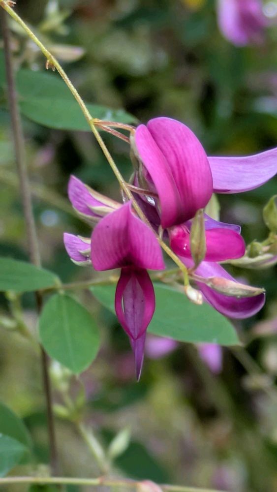 4枚目、まだ蕾の萩があって、ミヤギノハギに比べると全体にこじんまりとしている🟢 葉が丸みを帯びているけれど、萼歯が尖っていないところからするとヤマハギかな?花序の長さがよく分からん( ˆ﹀ˆ٥)