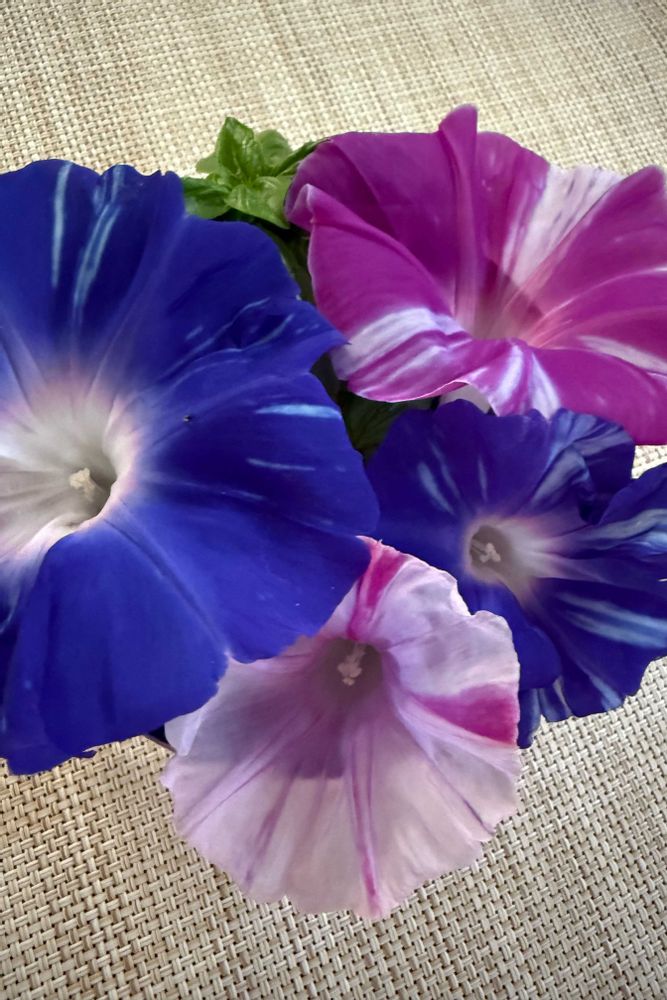 家の朝顔は一色(青紫色)になってしまいました~😆
