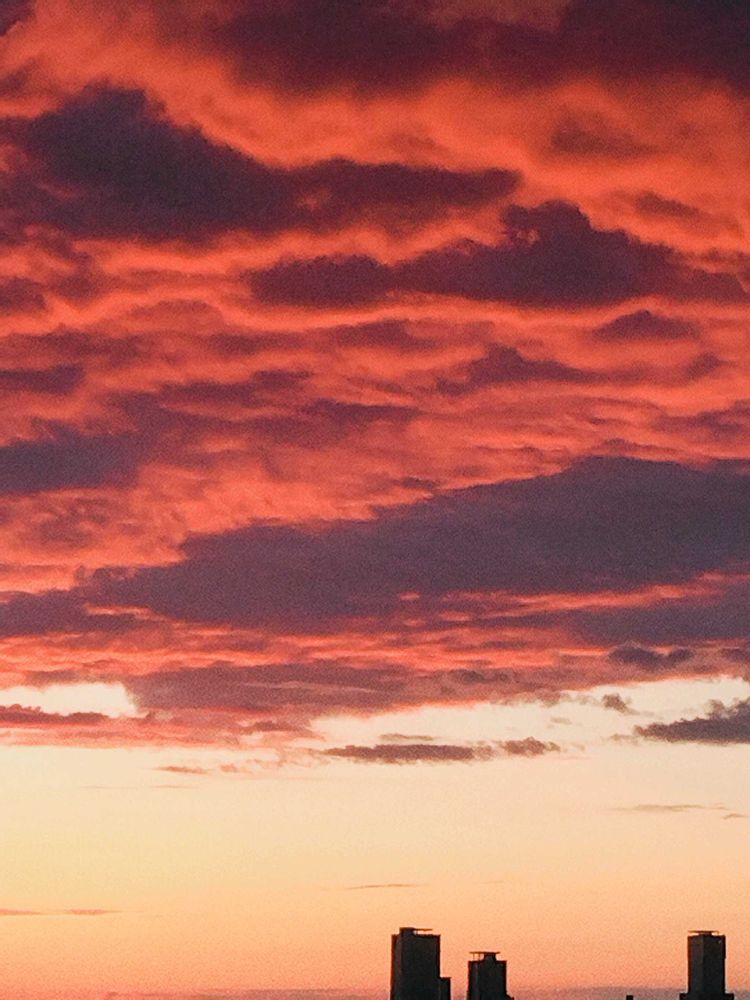 濃厚な朝焼けがキレイはキレイなんですけど、コワイも半分混じってるかもしれません😱