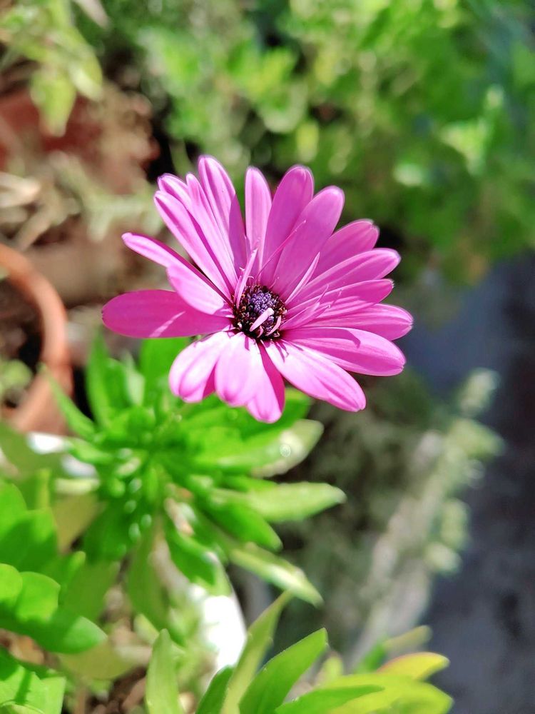 ①…バルコニーのオステオスペルマムがまた一輪だけ咲いてくれています😍