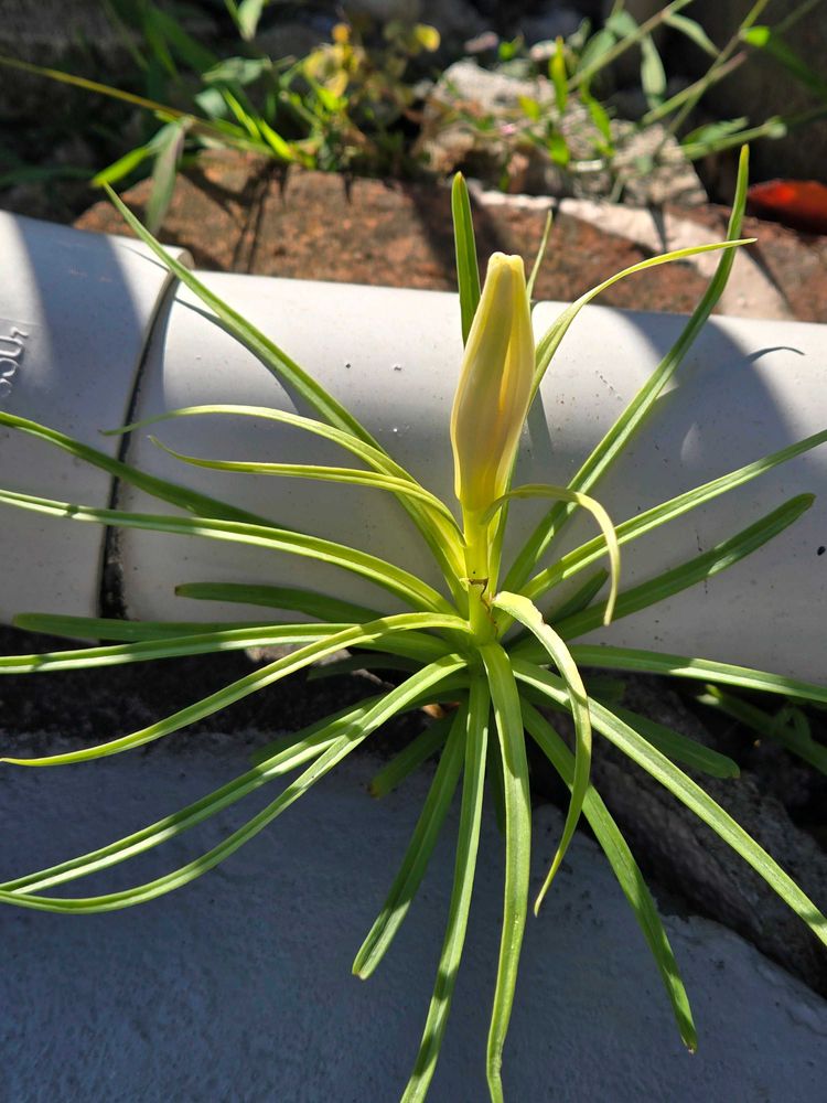 ゴミ出しの後家の外回り掃除🧹してたら駐車場横にこんな蕾がありました🥰