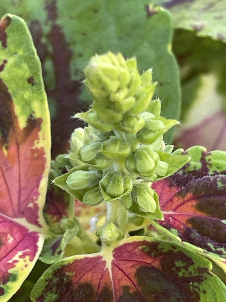 コリウスの花穂、出たら摘んで、花より葉の美しさを楽しもうと秋から積むことに。