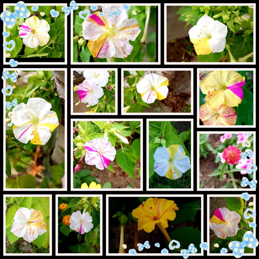 これまでに咲いた、主なオシロイバナの混色⚪🟡🔴