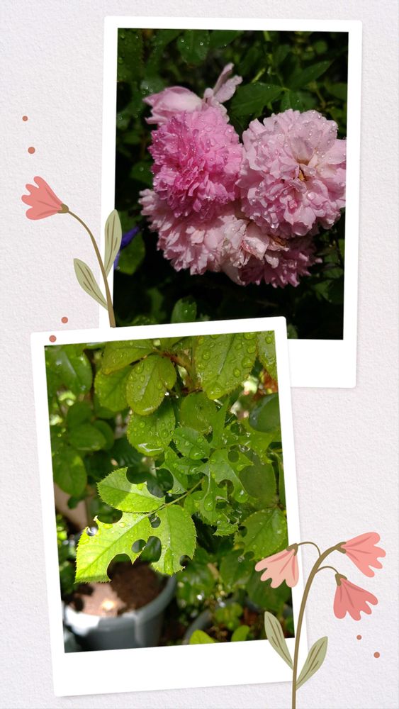 一緒に写ってる薔薇 レイニーブルーに似てますよね🌹 名無しのつるバラなんです レイニーブルー つるが伸びて大きくなってはいるんだけど 黒星になって だいぶ葉が落ちてしまいました😱