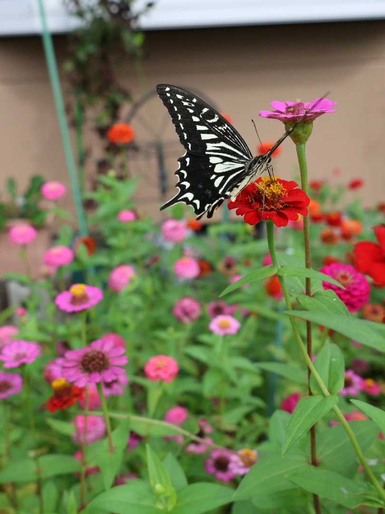 3️⃣百日草とアゲハチョウ