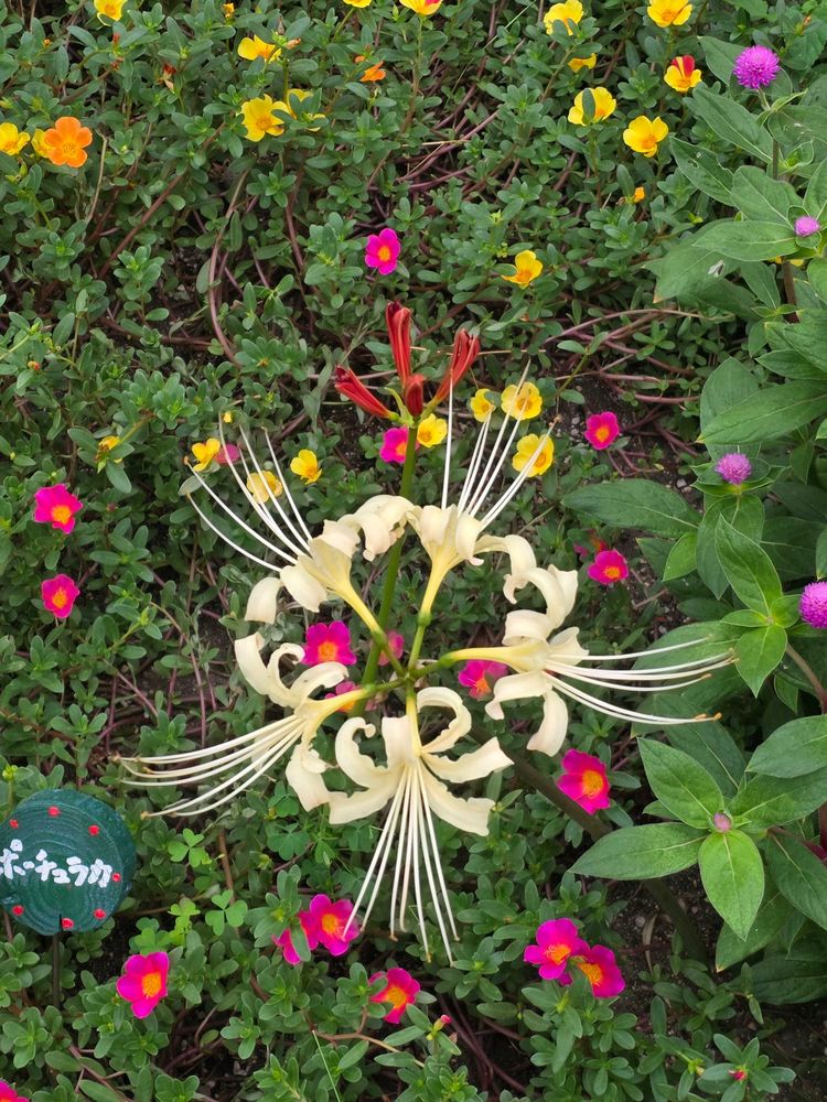 ①②③ ❤️ポーチュラカと🤍ヒガンバナ仲良く咲いていました