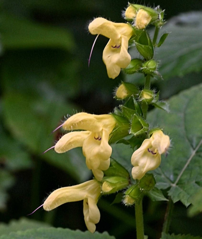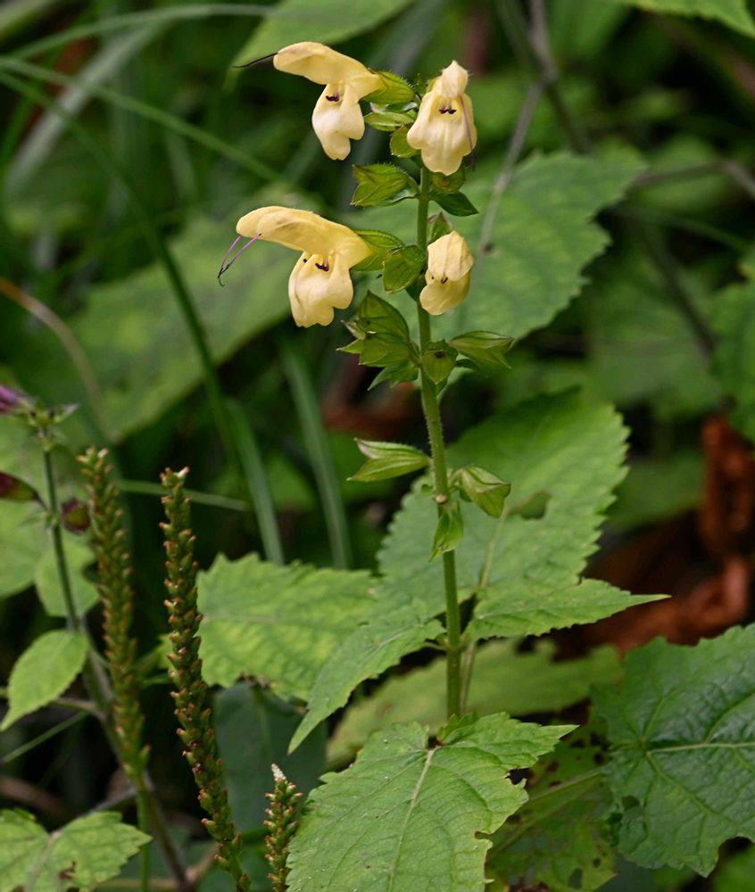 山地の木陰に生育する多年草で、日本のシソ科の中では珍しい黄色系の花を咲かせます。