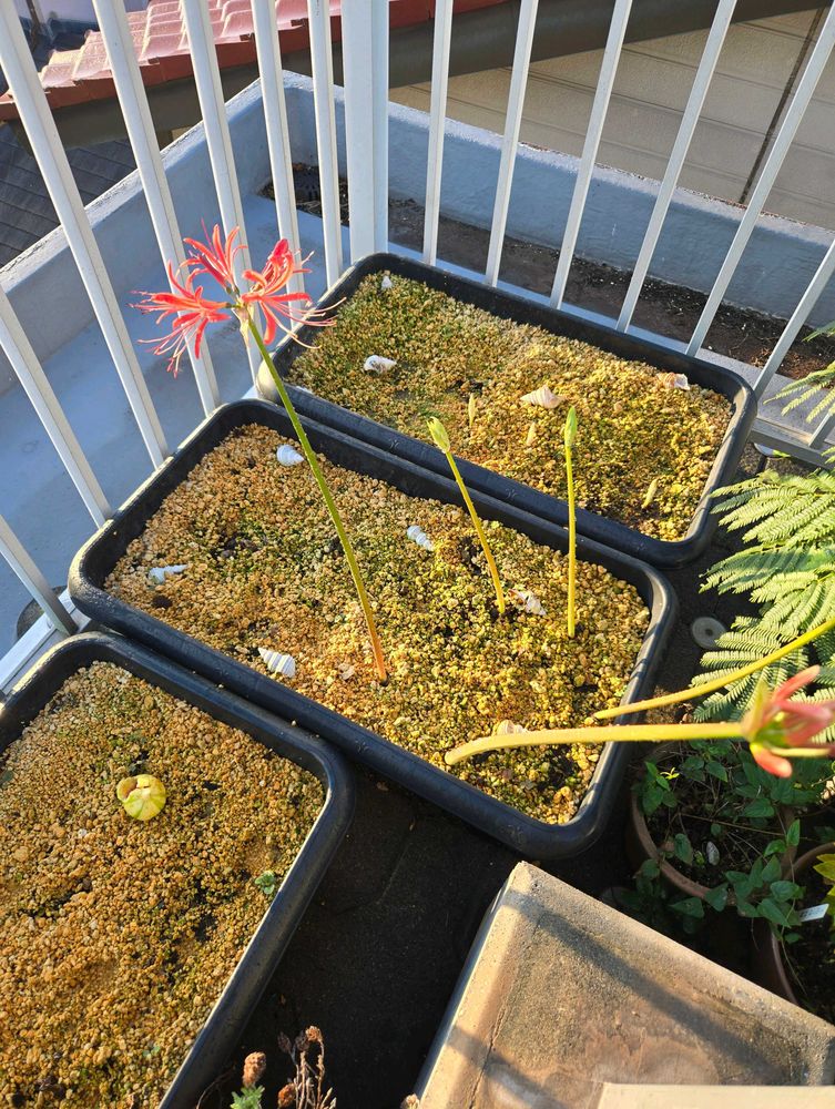 先日投稿した彼岸花の花芽が開花しました。(南側のプランター)