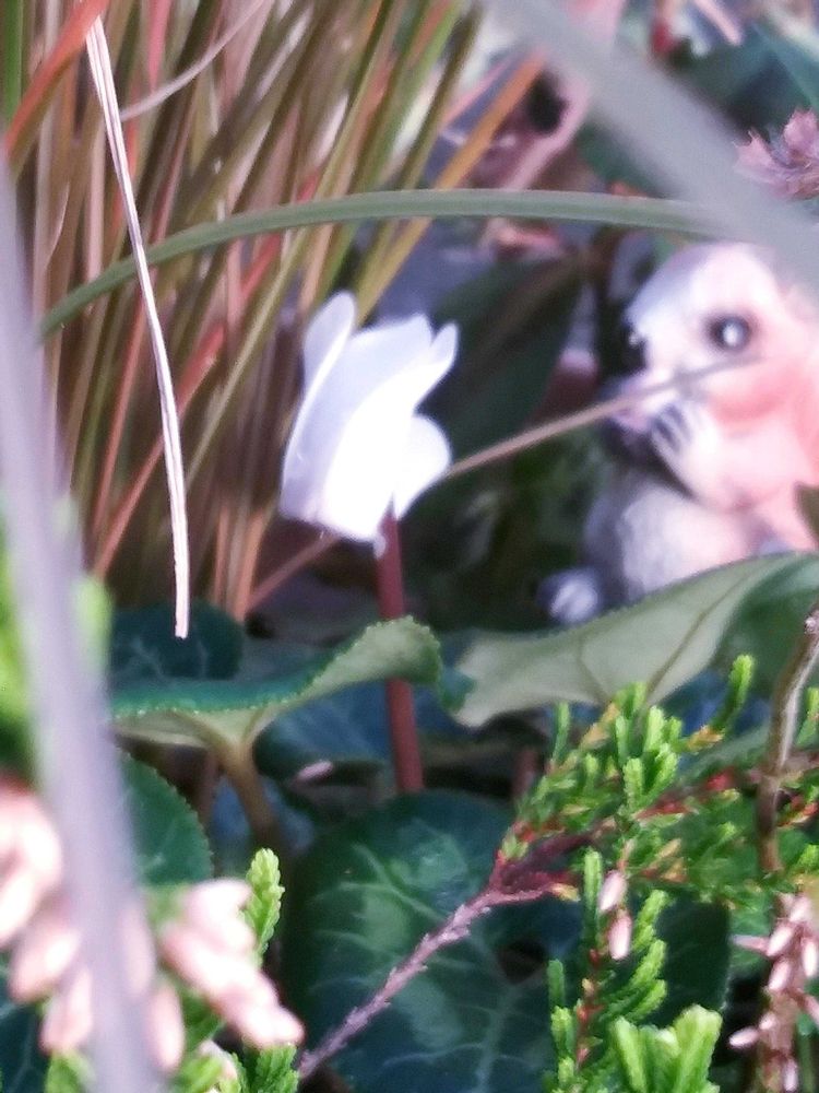 ② 去年の秋に寄せ植えにしたガーデンシクラメンが今日、春以来咲き出してました😲