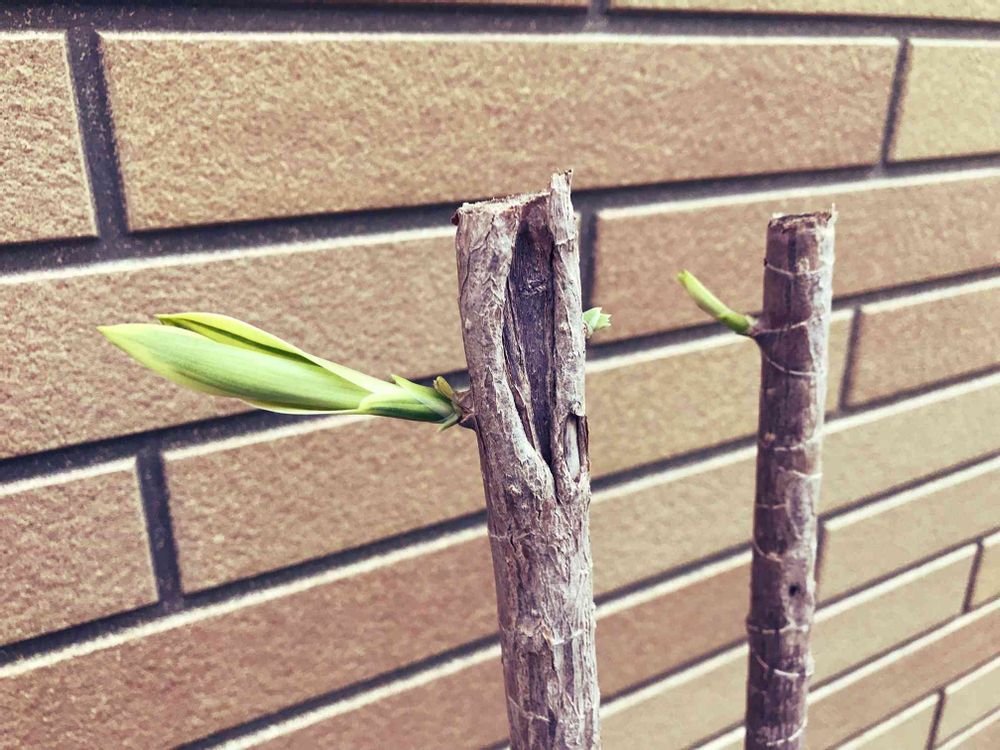 6月にガッツリと切ったソングオブインディアの幹からやっと新芽が出た〜!!!😆😆😆💕