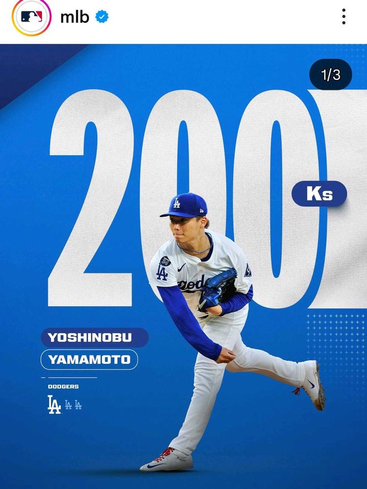 山本由伸投手は、200 奪三振🙌🙌🙌。