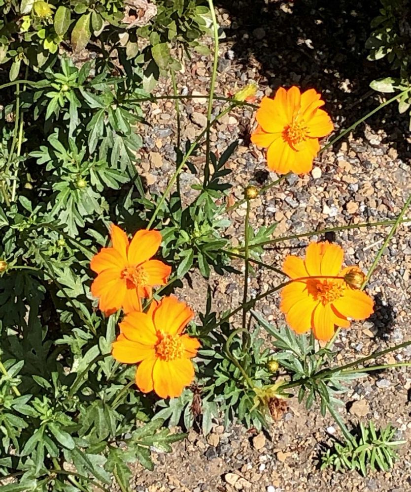 鮮やかな色で目立つように咲いていた花。『キバナコスモス』さん。黄色いというより『オレンジ🧡』でした。