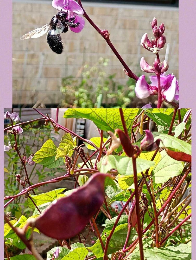 ④🍀花友さんから頂いた種、ドリチョスラブラブ。ハナムグリのお客様…のお陰様(😄?)ルビームーン💜🌙と呼ばれる種もあちらこちらに。ステキな色です👌