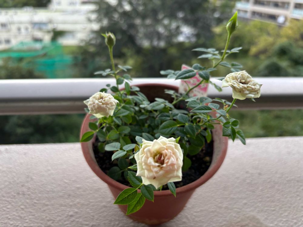 和歌山に行った時に記念に買って来たミニ薔薇カルーセルコルダーナさんがたくさん開花して来ました〜