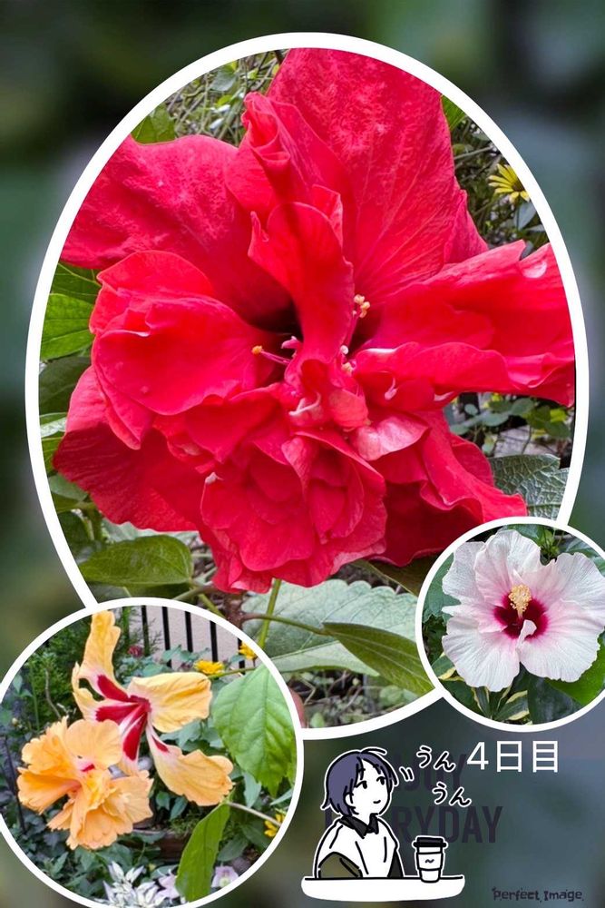 ②今朝開花のハイビスカスと