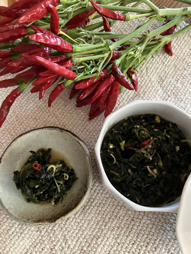 葉っぱコメ油とごま油炒めて直ぐ食べたい😋