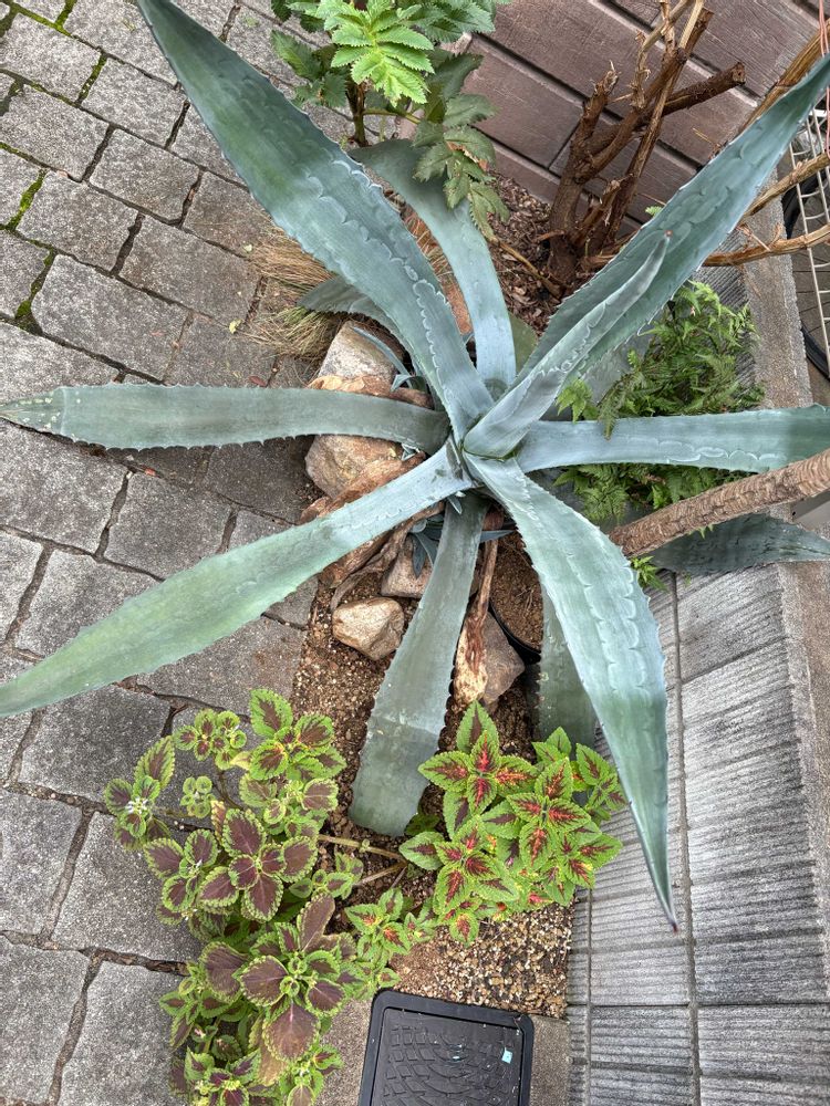 そんな中で元気なアガベ、大きくなるのは知ってたから鉢ごと入れたけど、たぶん根が鉢の外へ出て巨大化してる… 今後、なんとかしなきゃ