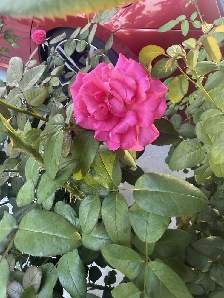 春の開花は本当に見事の一言で大輪咲きで濃いピンクに表層に藤色の青みが花を浮き出す印象かなり目立ちます