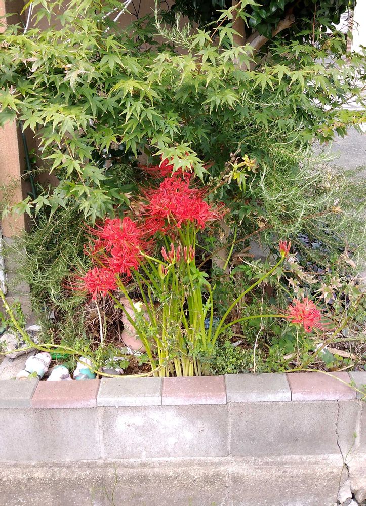彼岸花は元気に咲いてくれましたが後ろの紅葉は紅葉する前に葉が落ちるか枯れそうな雰囲気🤔