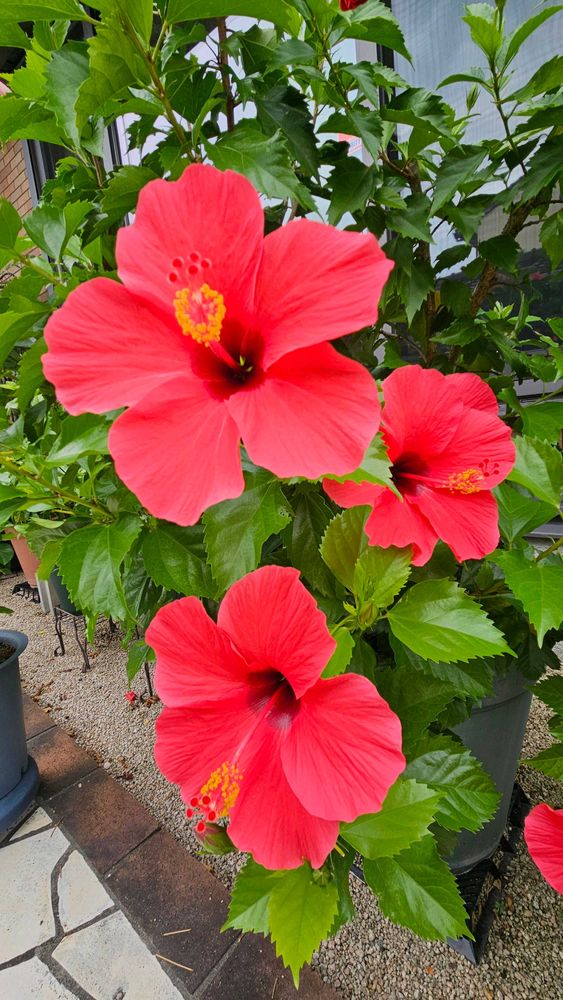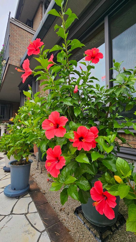 昨日に続きハイビスカス🌺の投稿です。今朝は裏側も入れて数えたら15個も花が咲いていました🙌