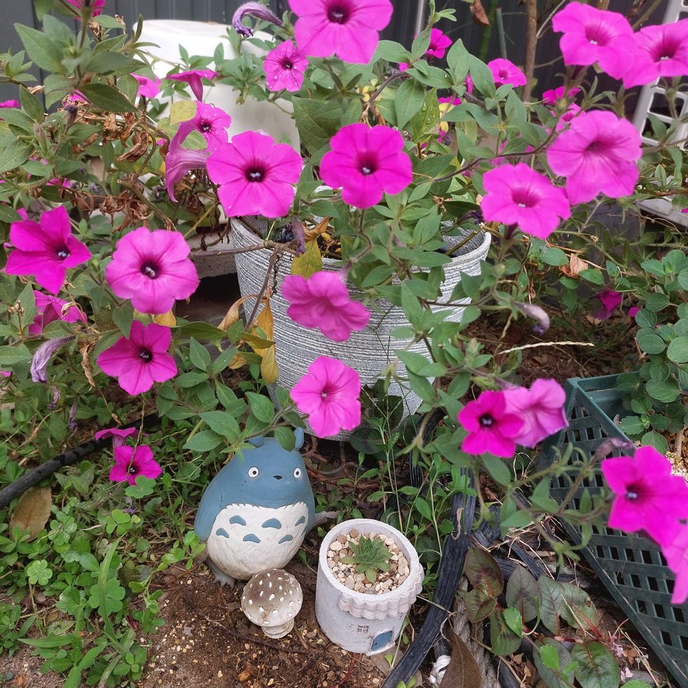 剪定しそこなったペチュニア🌸徒長して、咲いています🩷