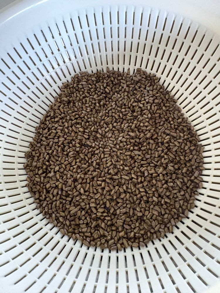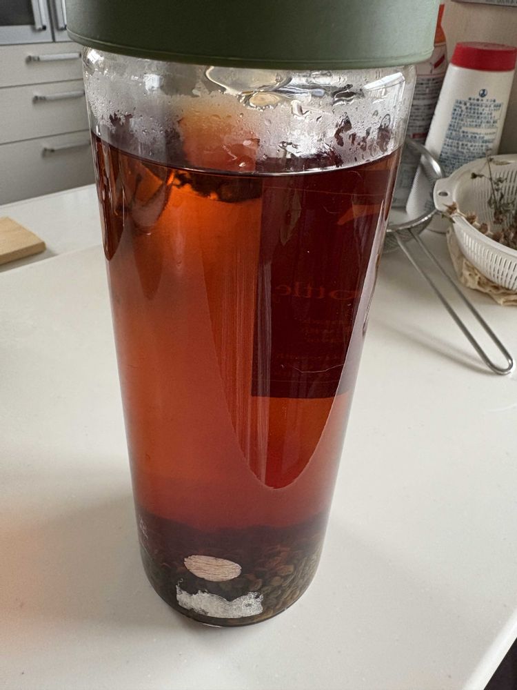 茶色く触るとカサカサ音がするくらいになった種(ケツメイシ)を、フライパンで炒って、お茶にしました🫖