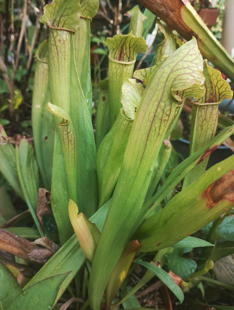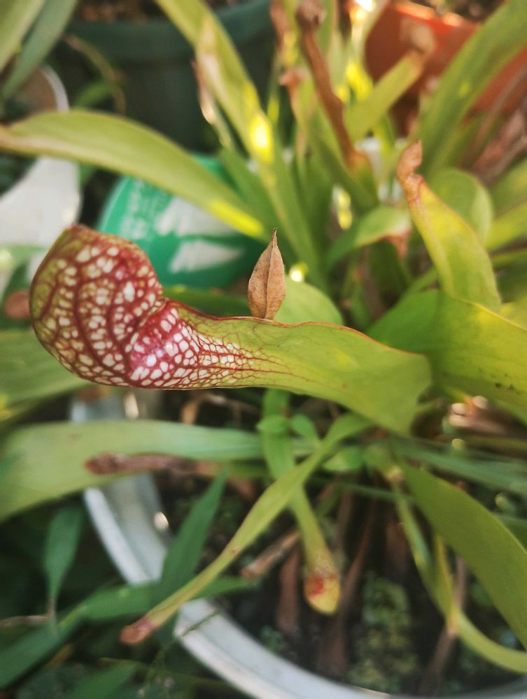 サラセニアは冬の寒さに強いのでウチには嬉しい植物です。ただ今年の暑さはだいぶダメージ受けてしまいお花も昨年ほどつきませんでした。もっと日陰に持っていけば良かったと今頃後悔してます💦