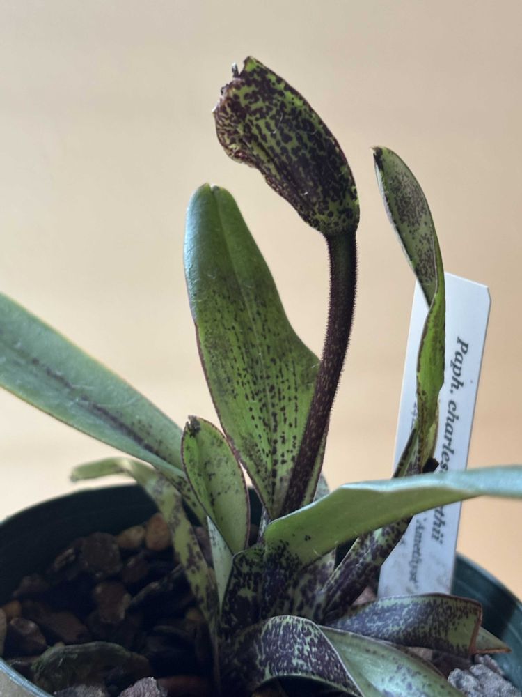 Paph. charlesworthii ‘Hot Top’ × ‘Amethyst’