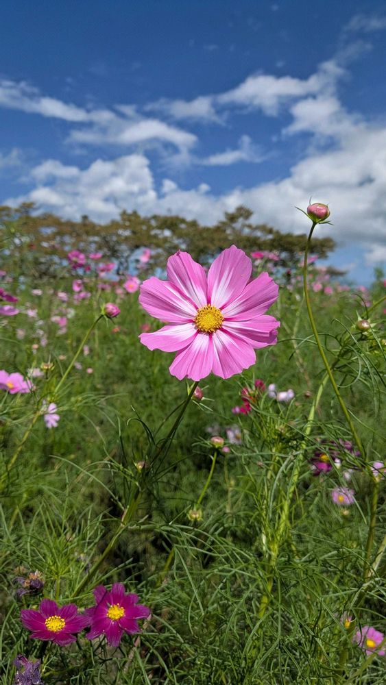 青空に映えるコスモスさんがいっぱい〜きれいですね♡🌸✨