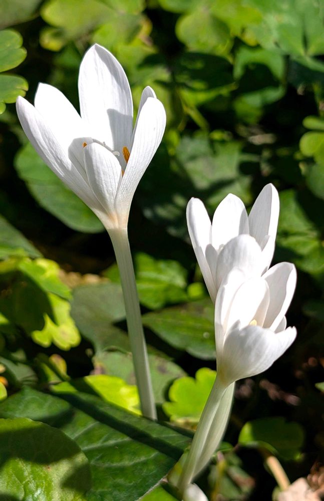先日投稿した八重のピンクのコルチカムに続いて白いお花がひょっこりはん|·_·)