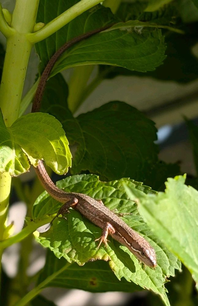 5️⃣先日バッサリと✂️した紫陽花の葉の上でカナヘビ🦎ちゃんが日光浴🔅🔆