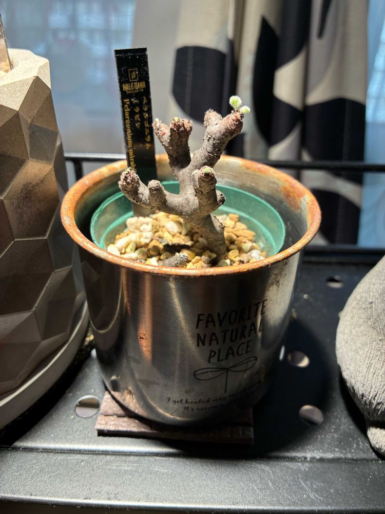 ちゃんと根っこは張っているらしく、新芽も出ています。大株というかベアルート株は高くて手が出せないので、コンパクトでもいい雰囲気を出しているこの子をこの冬愛でていこうと思います🩶