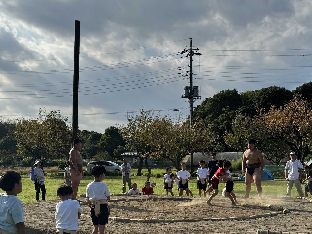ちびっこ相撲講習会をしていました。ちびっこがとても元気でした。