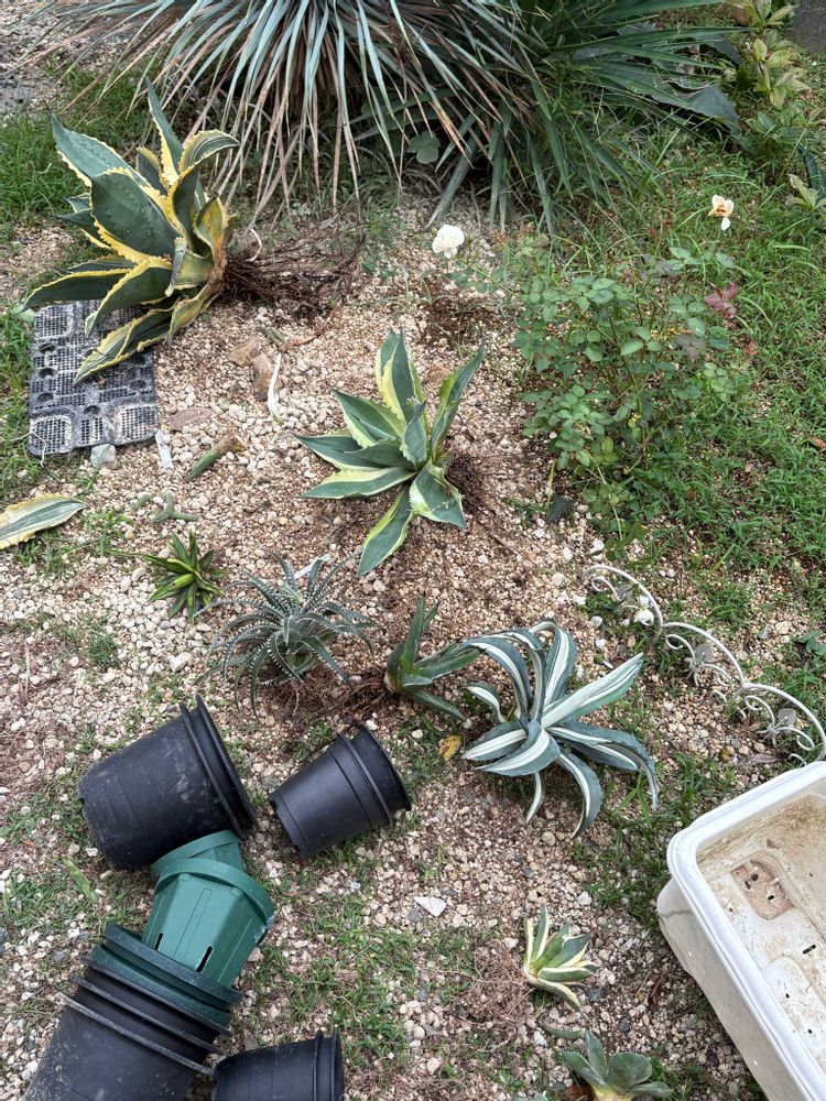 リアカーの中のアガベがパンパンだったから掘り上げて植え替えました🌵
