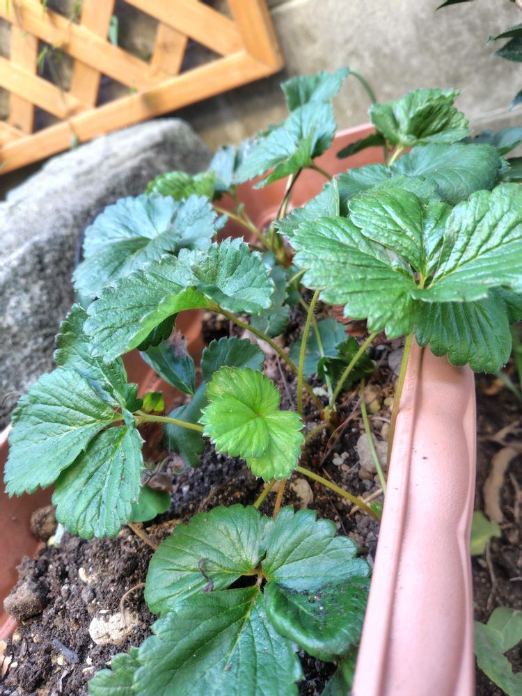 ①去年畑から引き上げてプランターに植えておいた🍓苗が、この春美味しい実を付けてくれました😋。