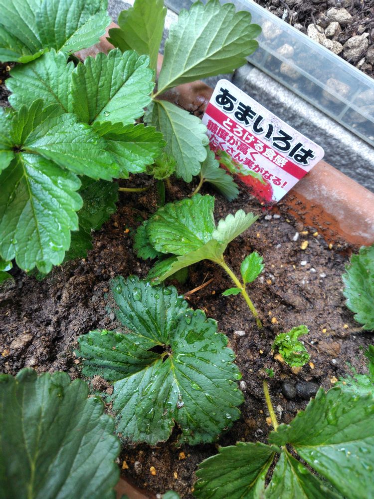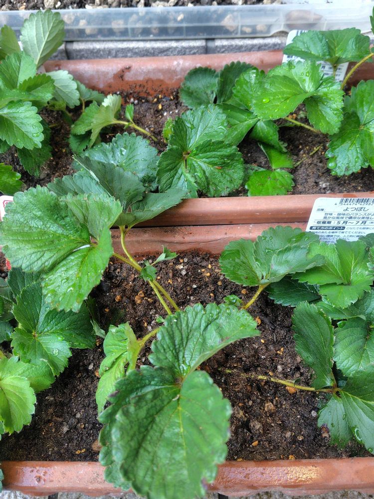 土も肥料も🍓用のを張り込んで、気合い入れて植え付けてみたよ💪。