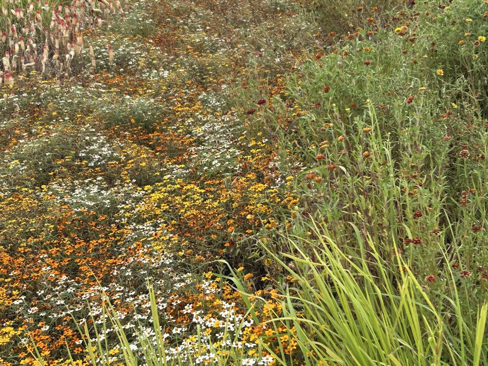 ジニアやナデシコ、千日紅の様なお花が咲いていました