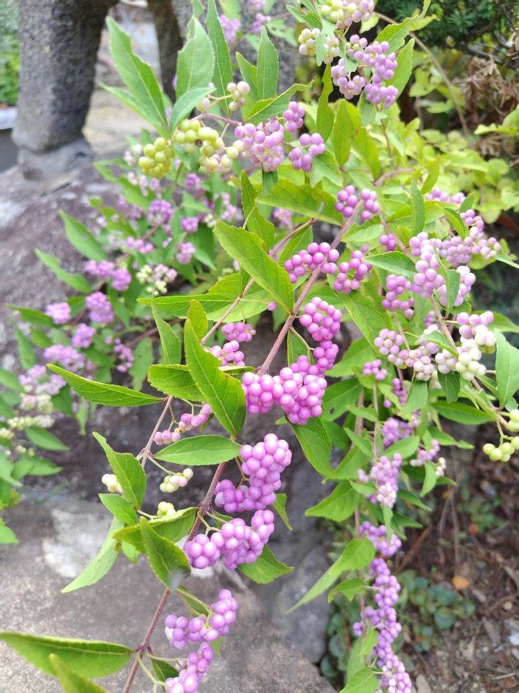 コムラサキシキブとレウコフィラムの色鮮やかな紫色が美しい💜