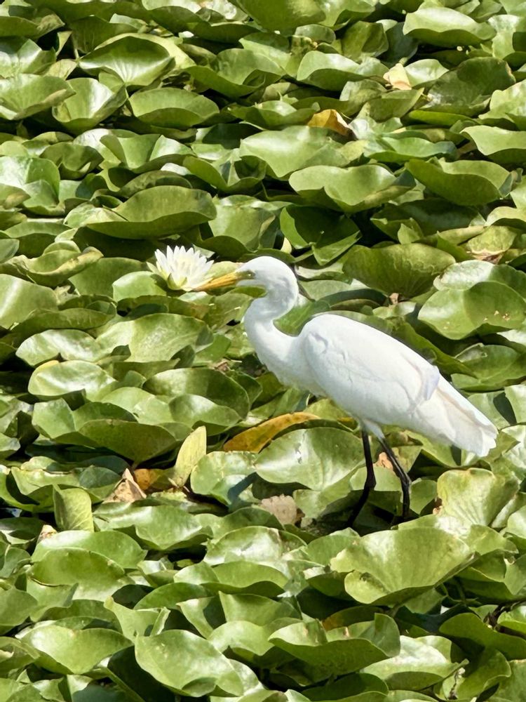 ダイサギとオオバンは睡蓮と一緒に🪿🐦⬛