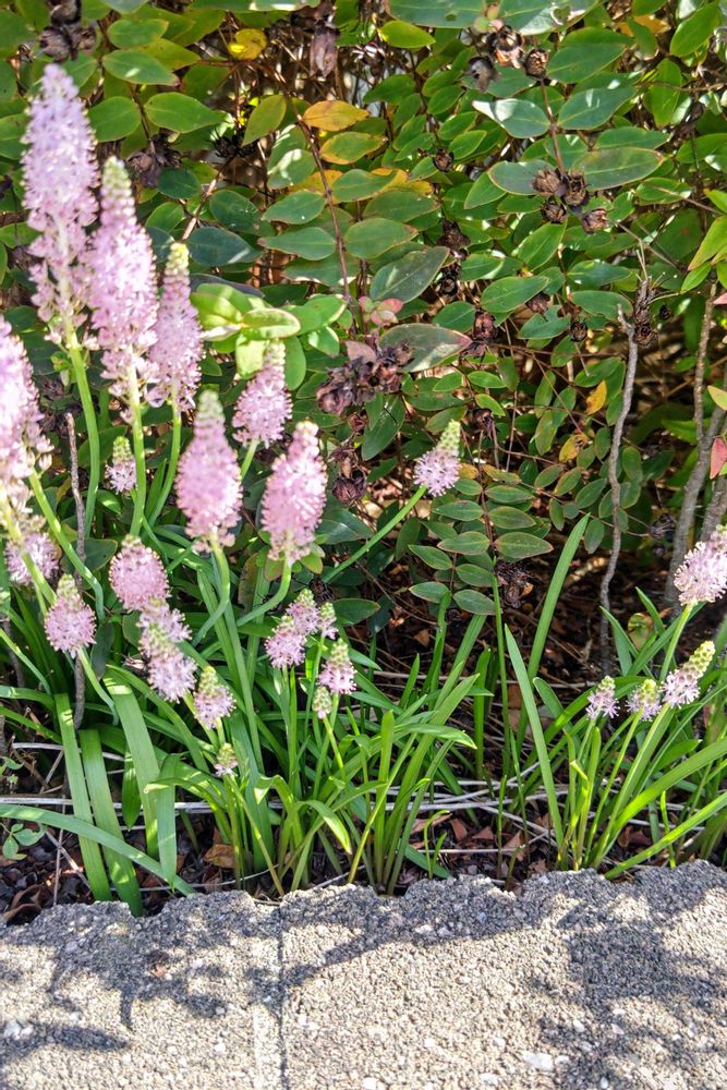 ツルボ、介護施設の植え込みに繁って