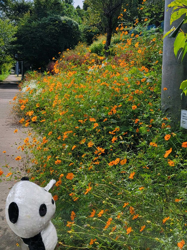 5️⃣キバナコスモスが歩道脇にずらり咲いてました🧡🧡🧡
