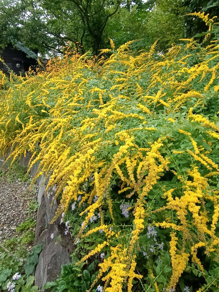 アキノキリンソウの仲間のソリダゴファイヤーワークスは初めての花で、沢山で見応えありで素敵〜💛💛💛💛💛✨✨✨✨