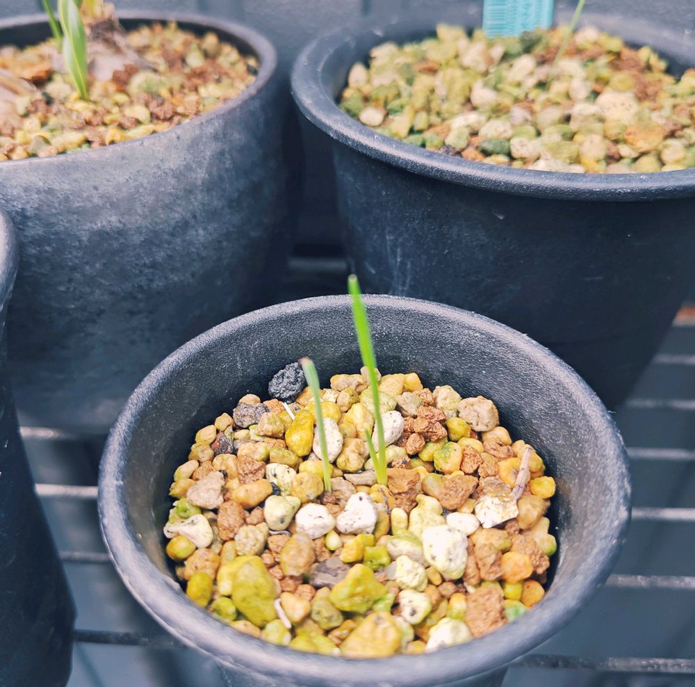 株分けして土中で過ごしていた球根からも葉が出てきてます。