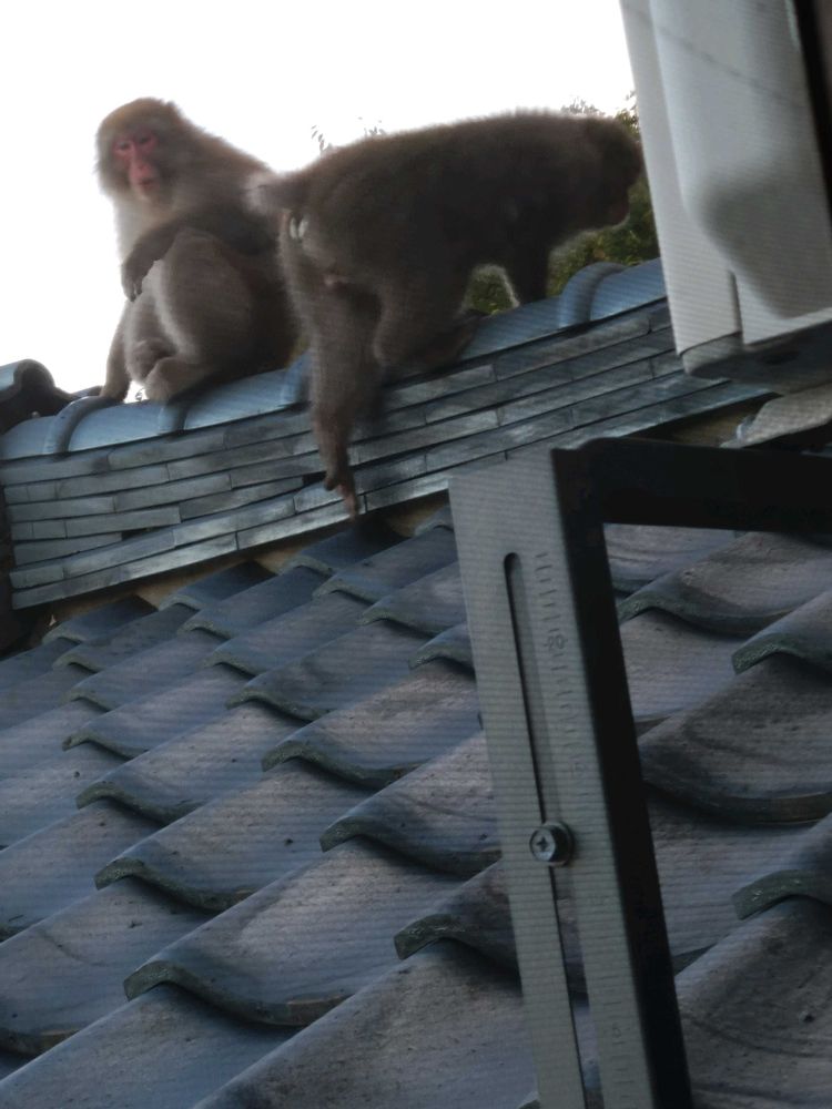 猿が我が物顔で屋根にいるなんて❗