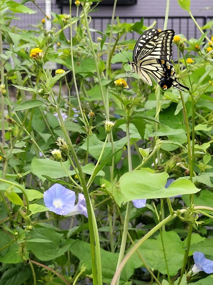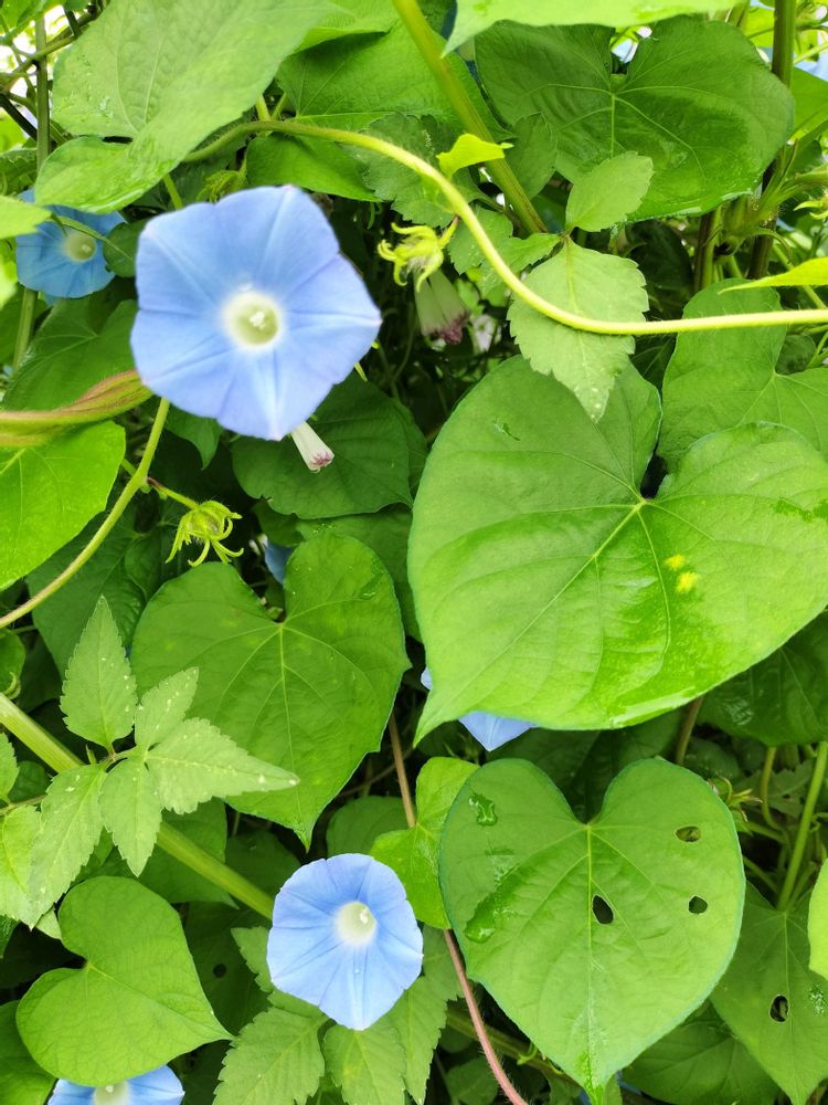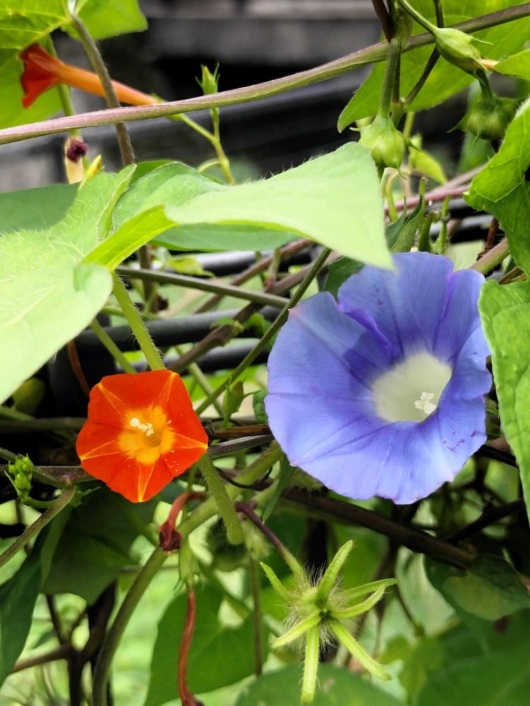 朝顔にマルバルコウに夏と秋の花が混在🌸🌼💐