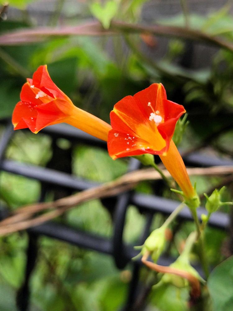赤いルコウソウと青いアサガオを撮影し眺めていたら
