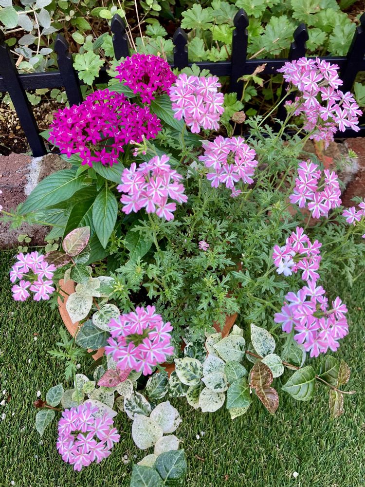②は1ヶ月前に丸坊主にした寄せ植えがやっと復活🌸