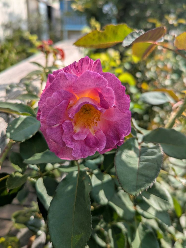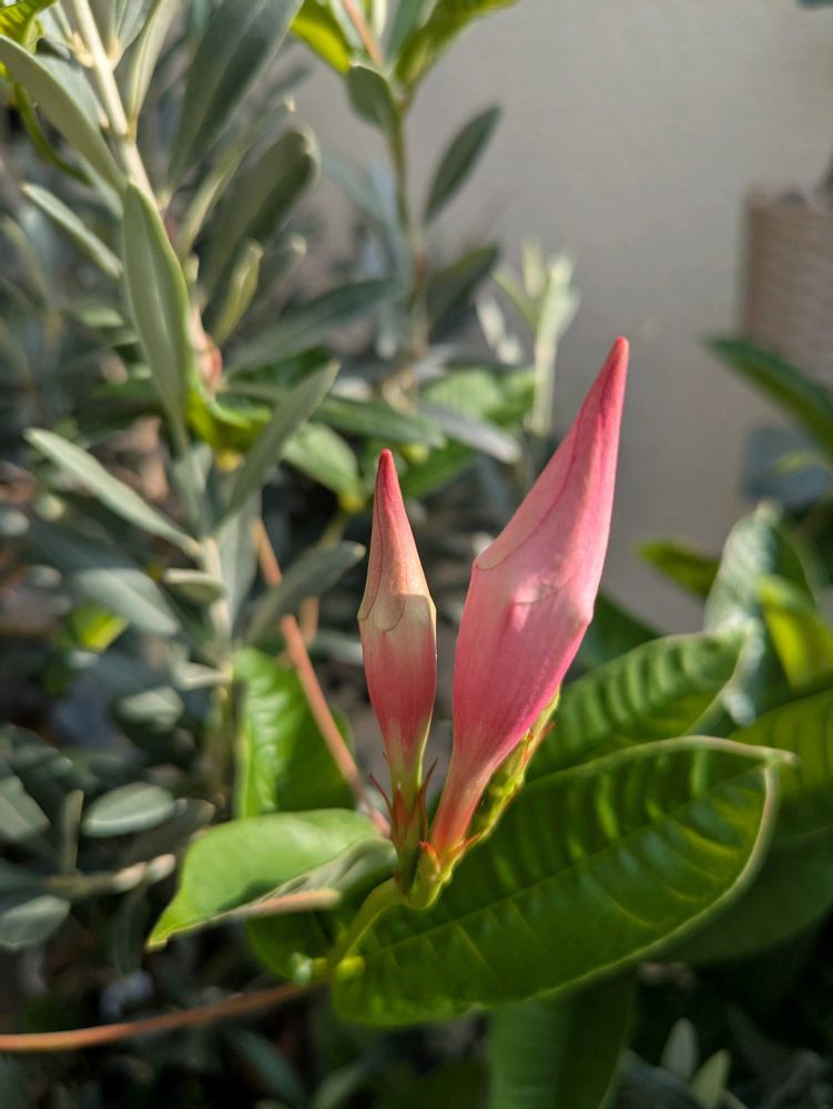 マンデビラ ローズジャイアント,バラ ブルー・フォー・ユー,黄色ジンチョウゲ、ナツボウズの投稿画像