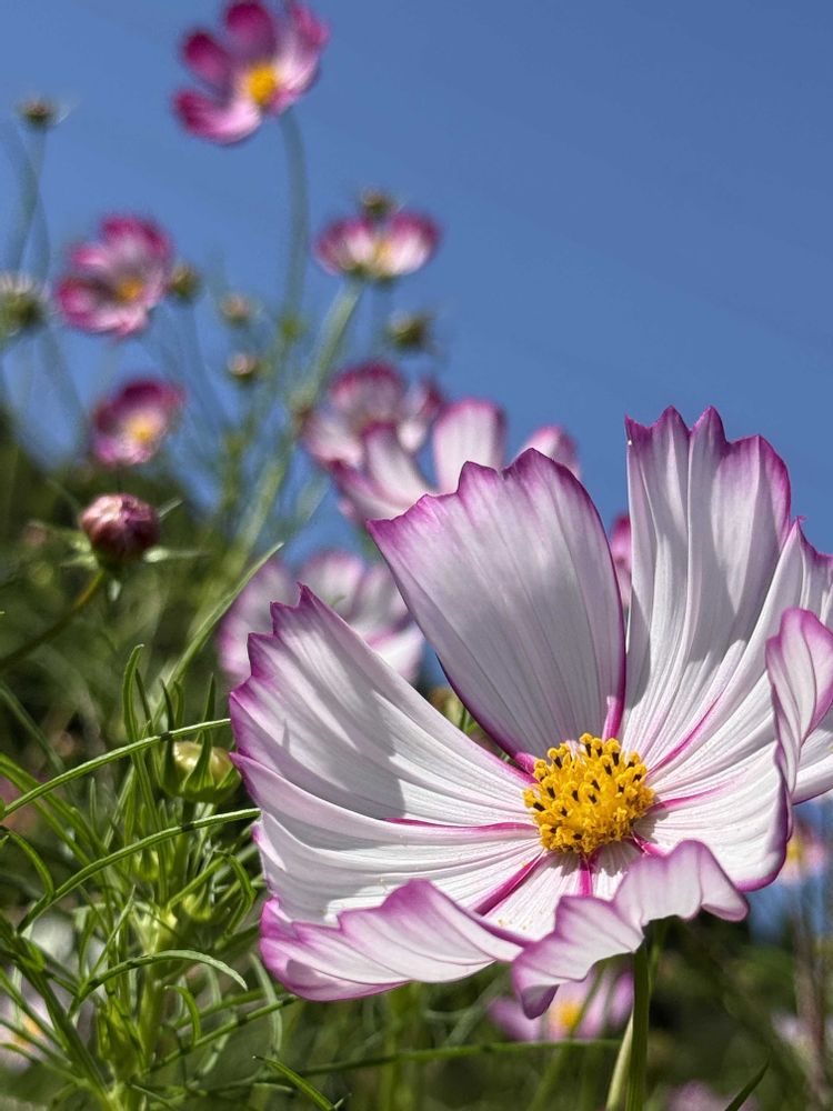 確か1、2枚目のコスモスの品種名はピコティだったと思います😊